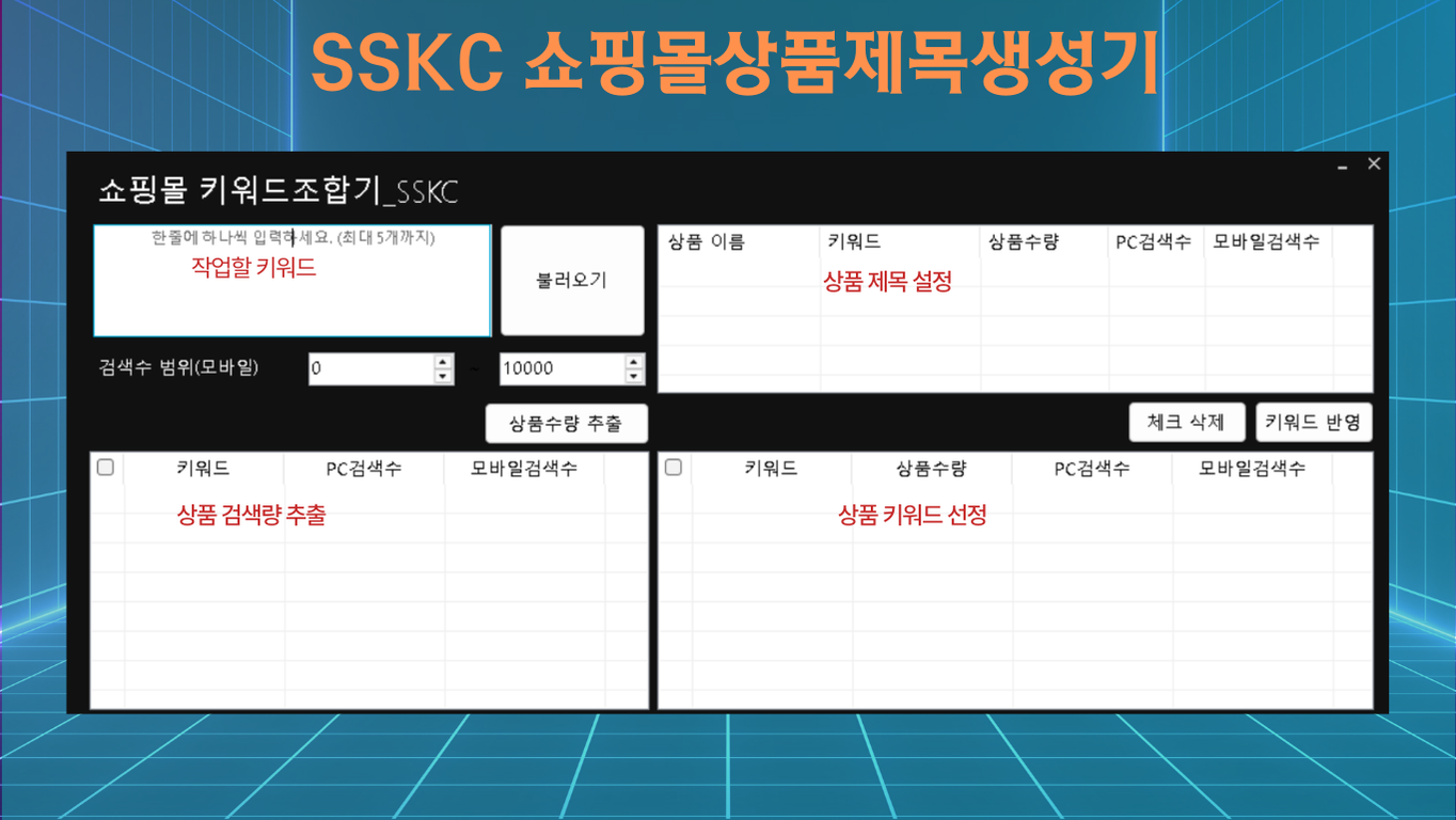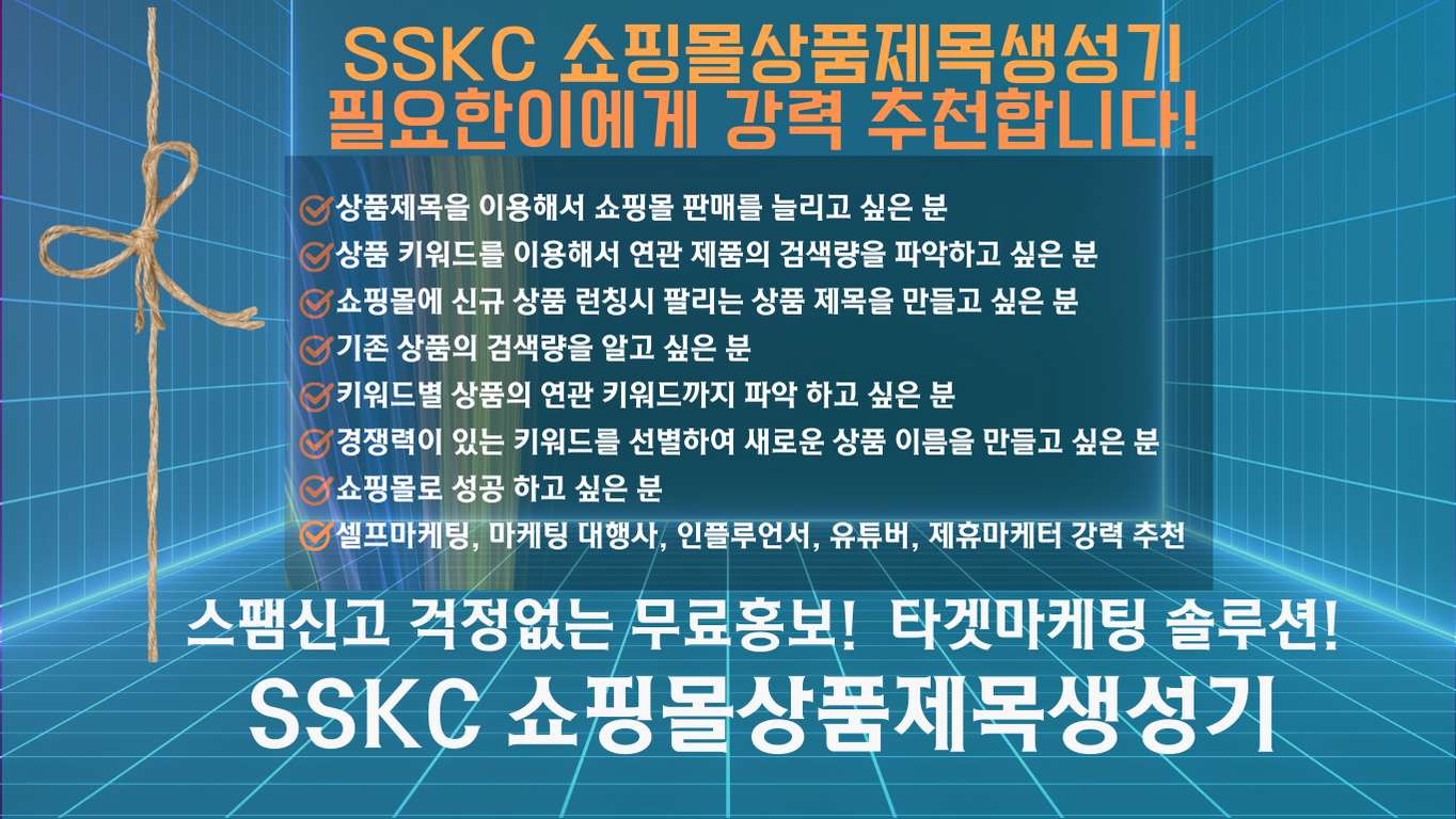 ⊙상품명: SSKC 쇼핑몰상품제목생성기