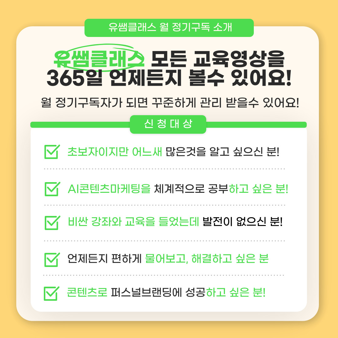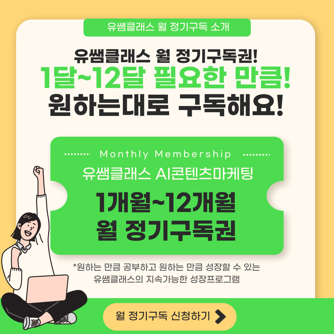 📢 유쌤클래스 AI 콘텐츠 마케팅 정기구독 OPEN! 🚀
