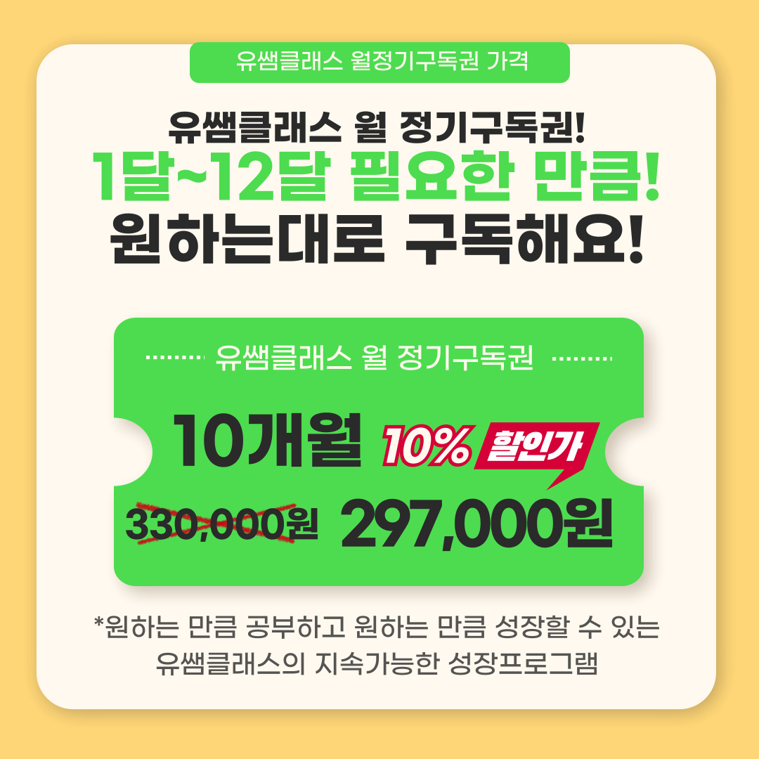 유쌤클래스 교육영상 VOD 10개월 정기구독권(10%할인)