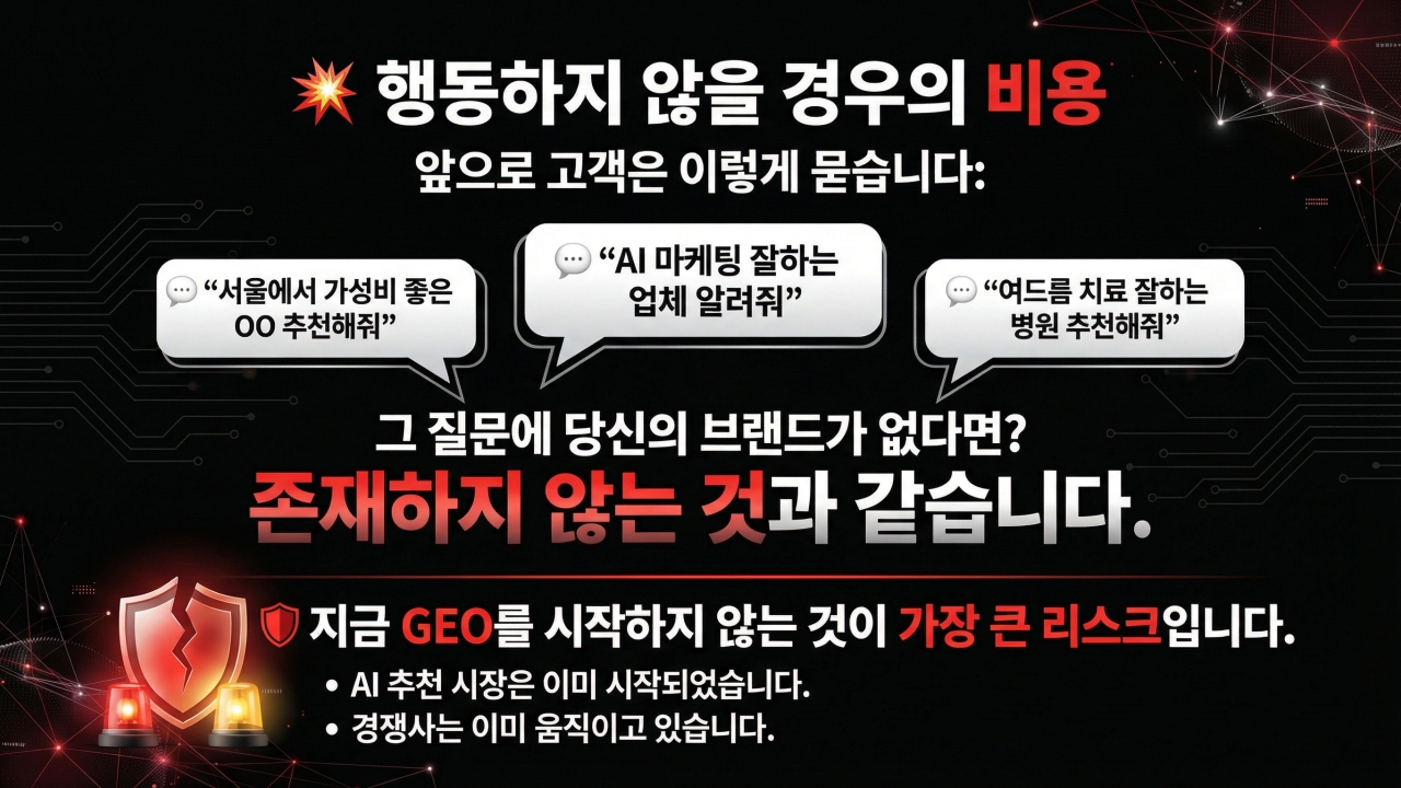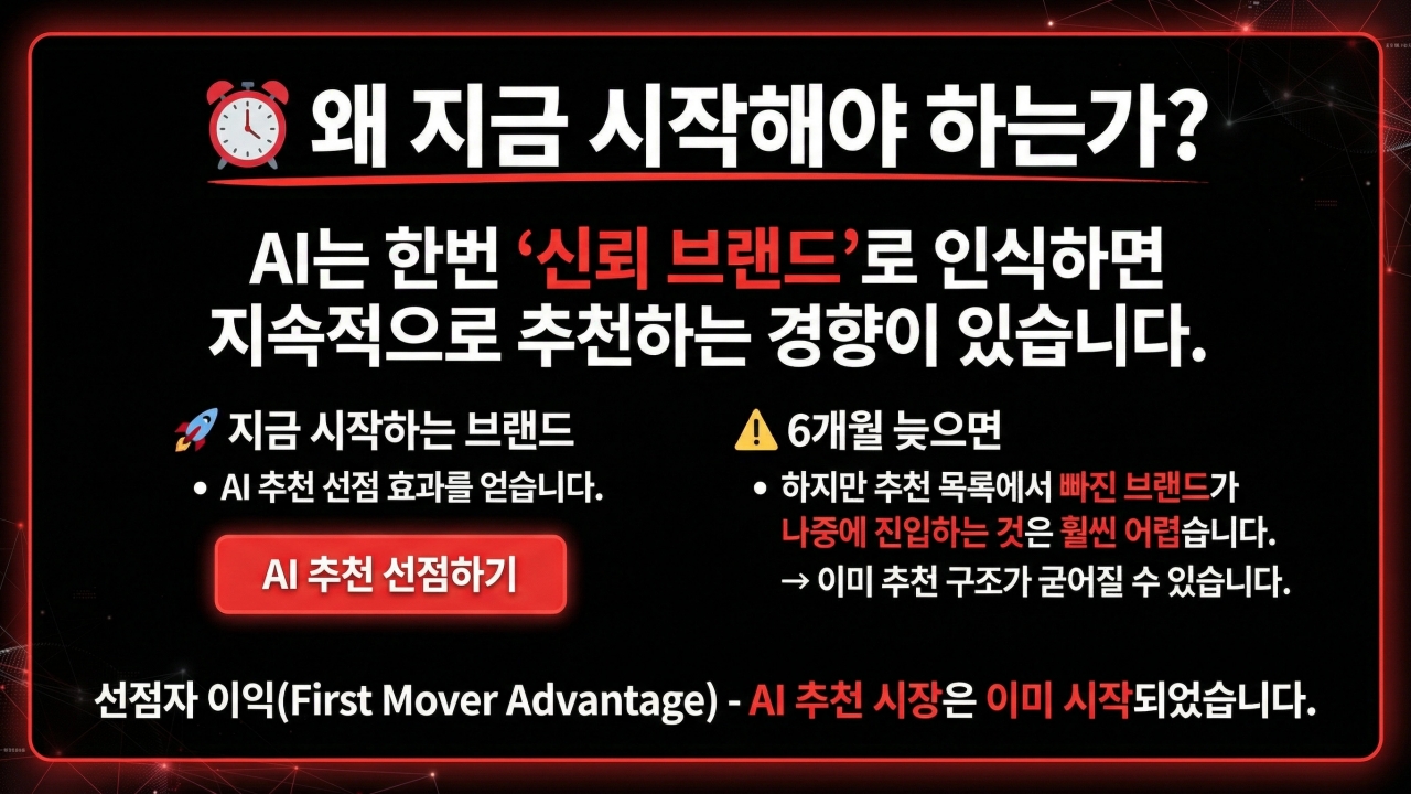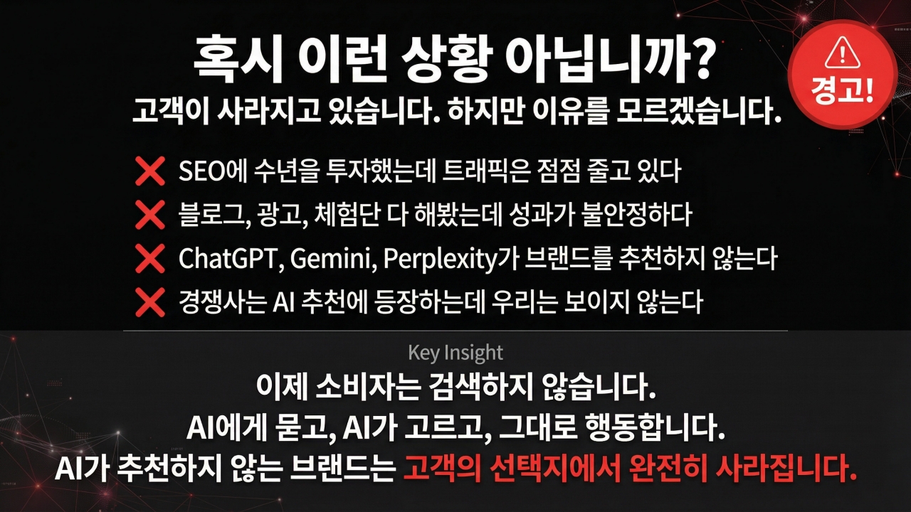 단순한 검색 상위 노출의 시대는 끝났습니다. 이제 AI가 고객의 구매 결정을 직접 설계합니다.