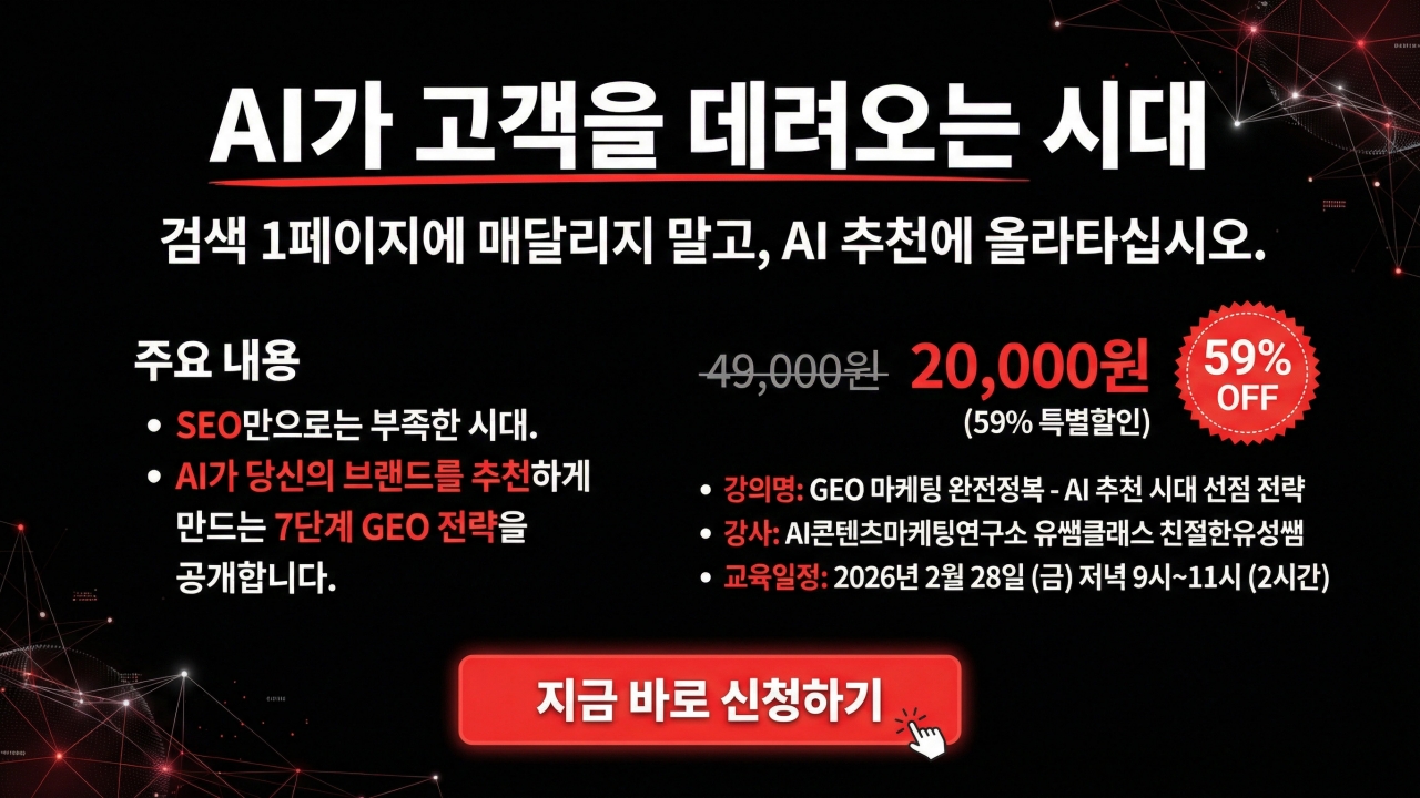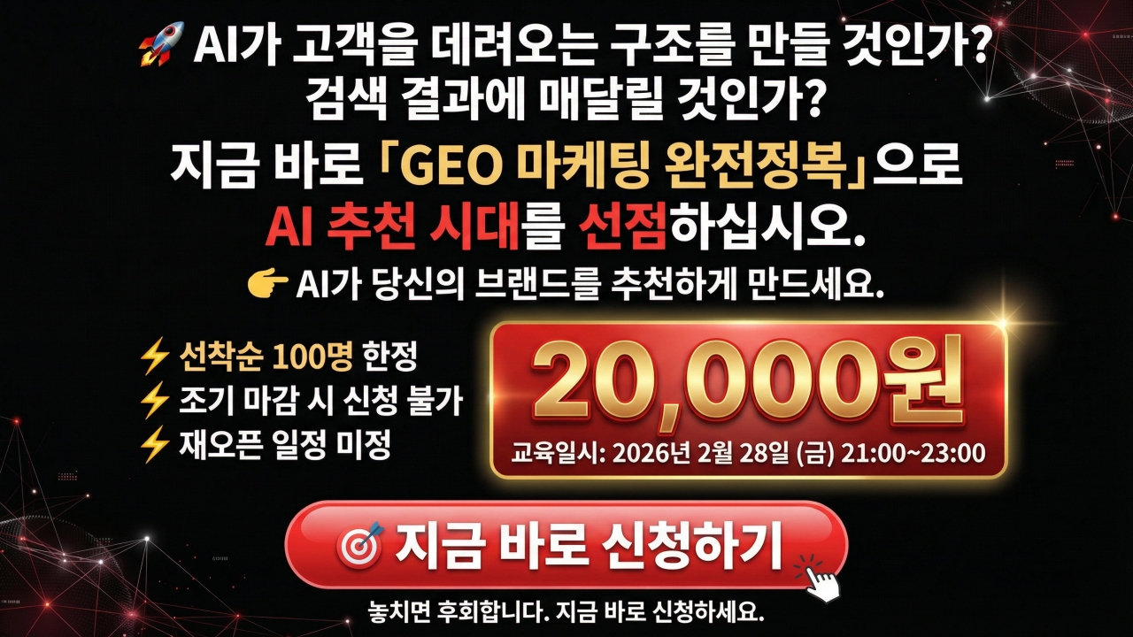 쇼핑몰 매출의 판도를 뒤집을 'AI GEO 7단계 성공 전략'으로 새로운 시장을 선점하세요.