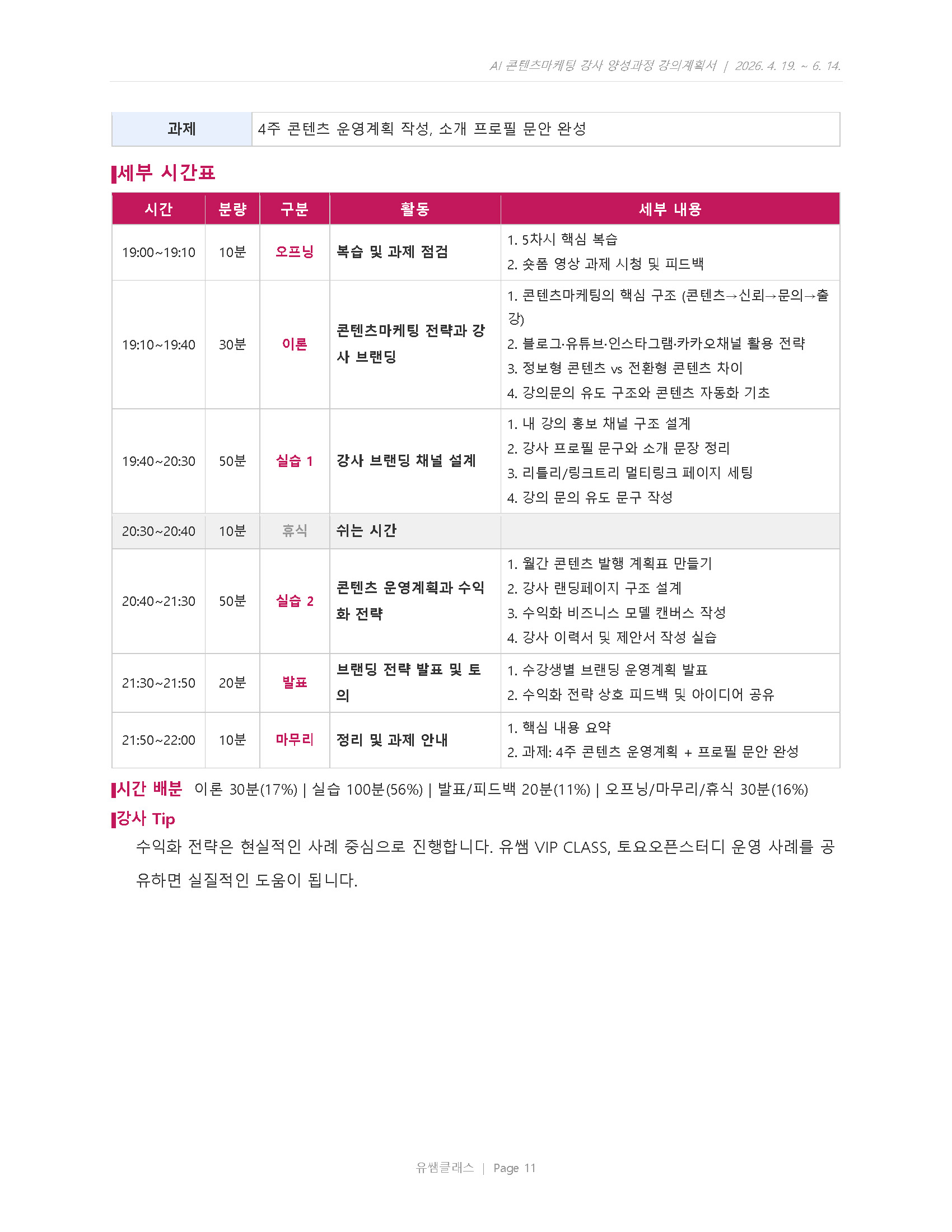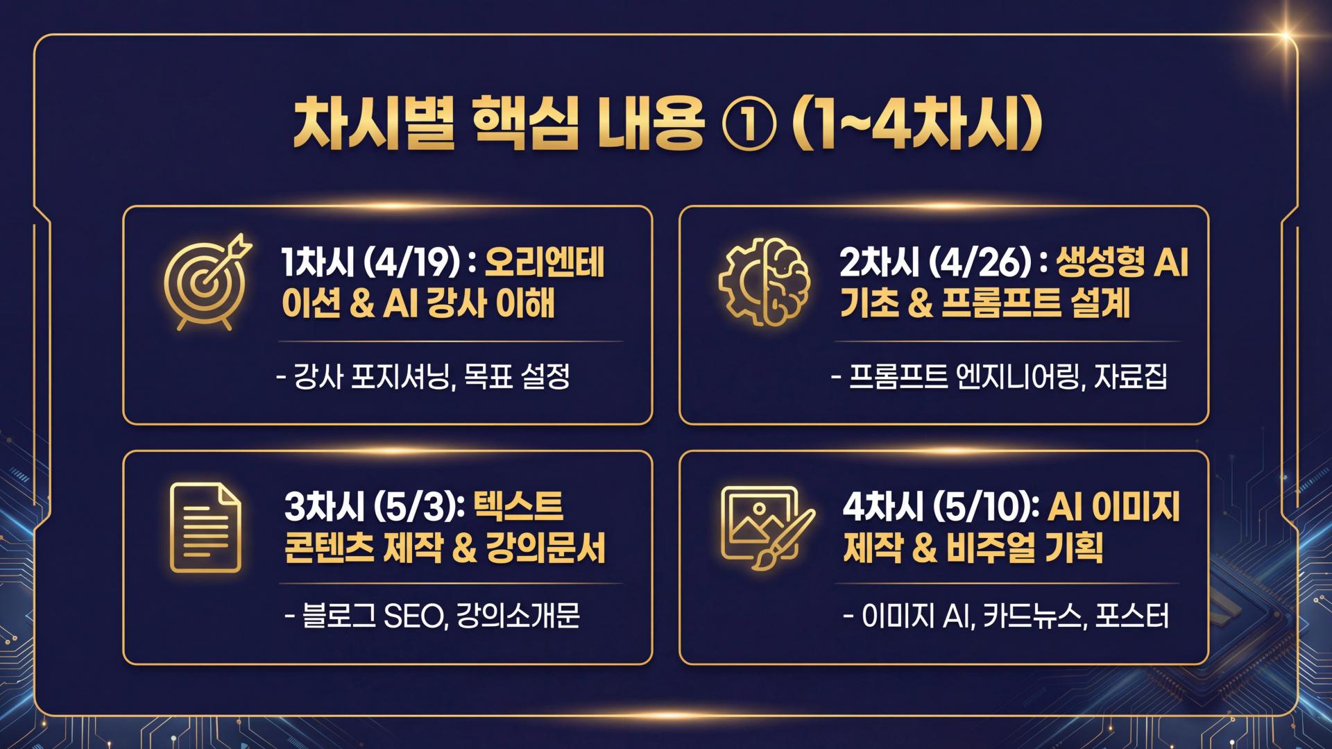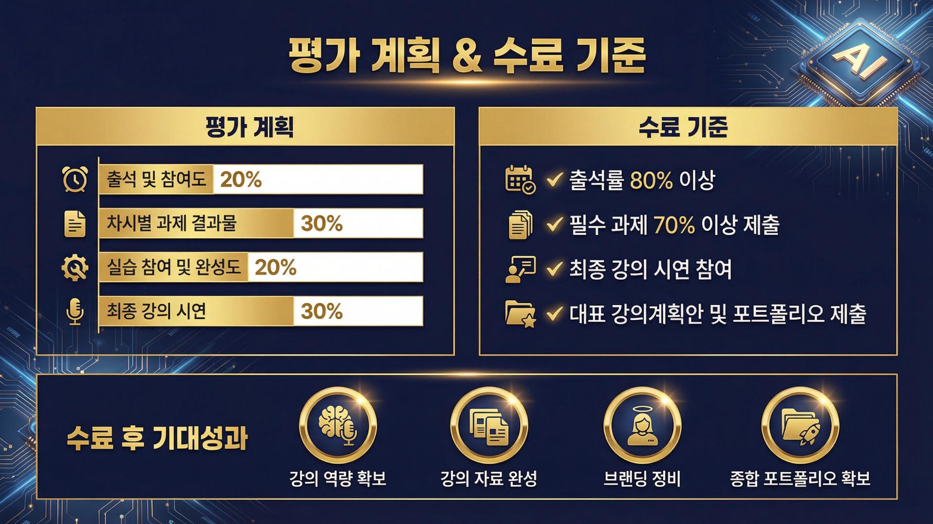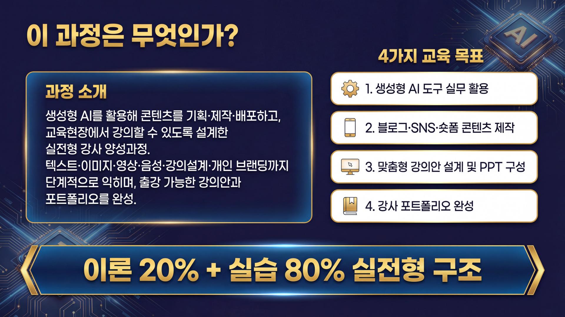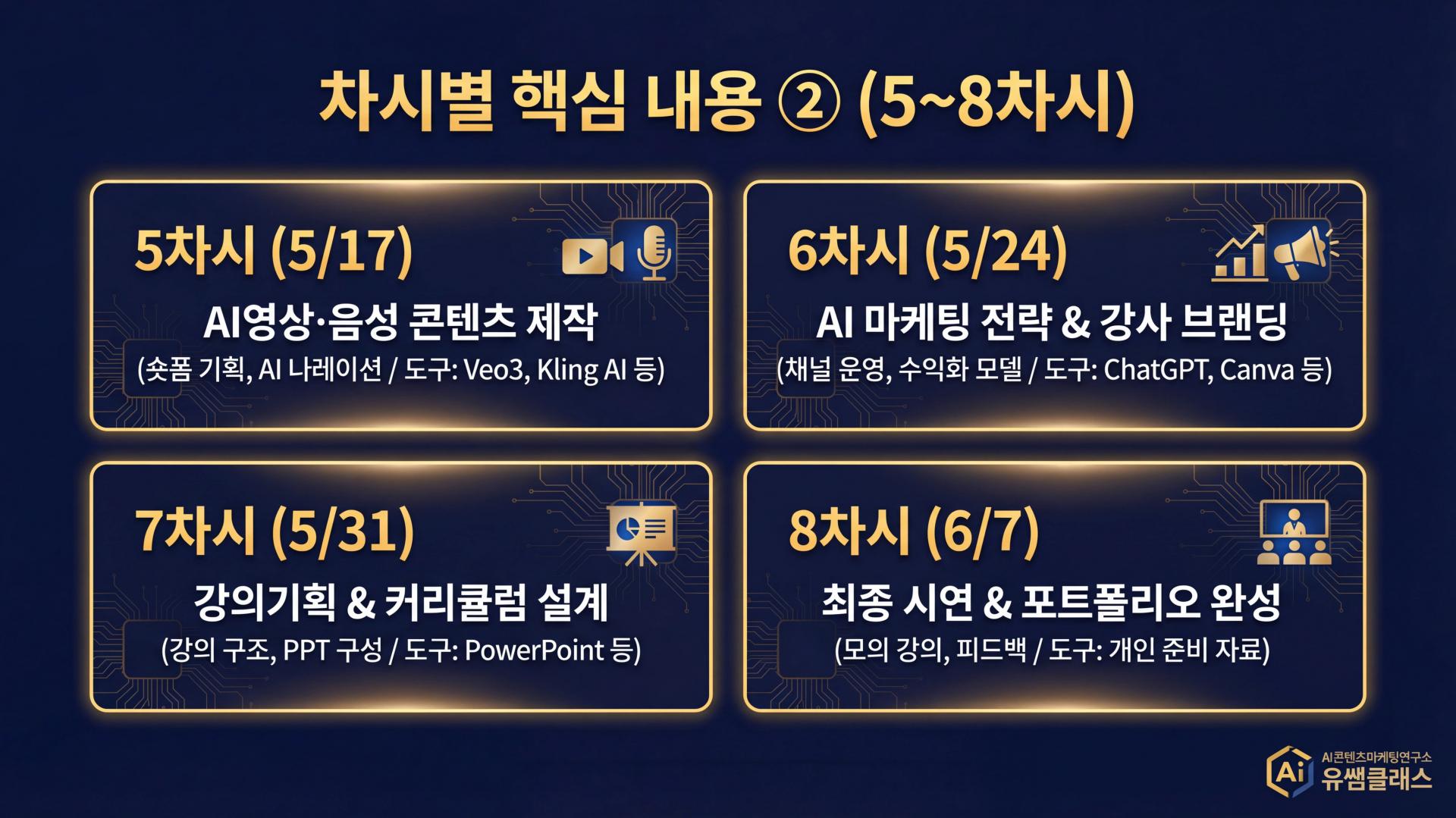 복잡하고 어려운 기술 설명 대신, '친절한 유쌤'이 현장에서 바로 통하는 **이론 20%, 실습 80%**의 압도적인 실무 중심 커리큘럼으로 이끌어 드립니다. 나만의 콘텐츠로 강의하고, 자동화로 마케팅하며, 확실하게 수익화하는 실전 노하우!