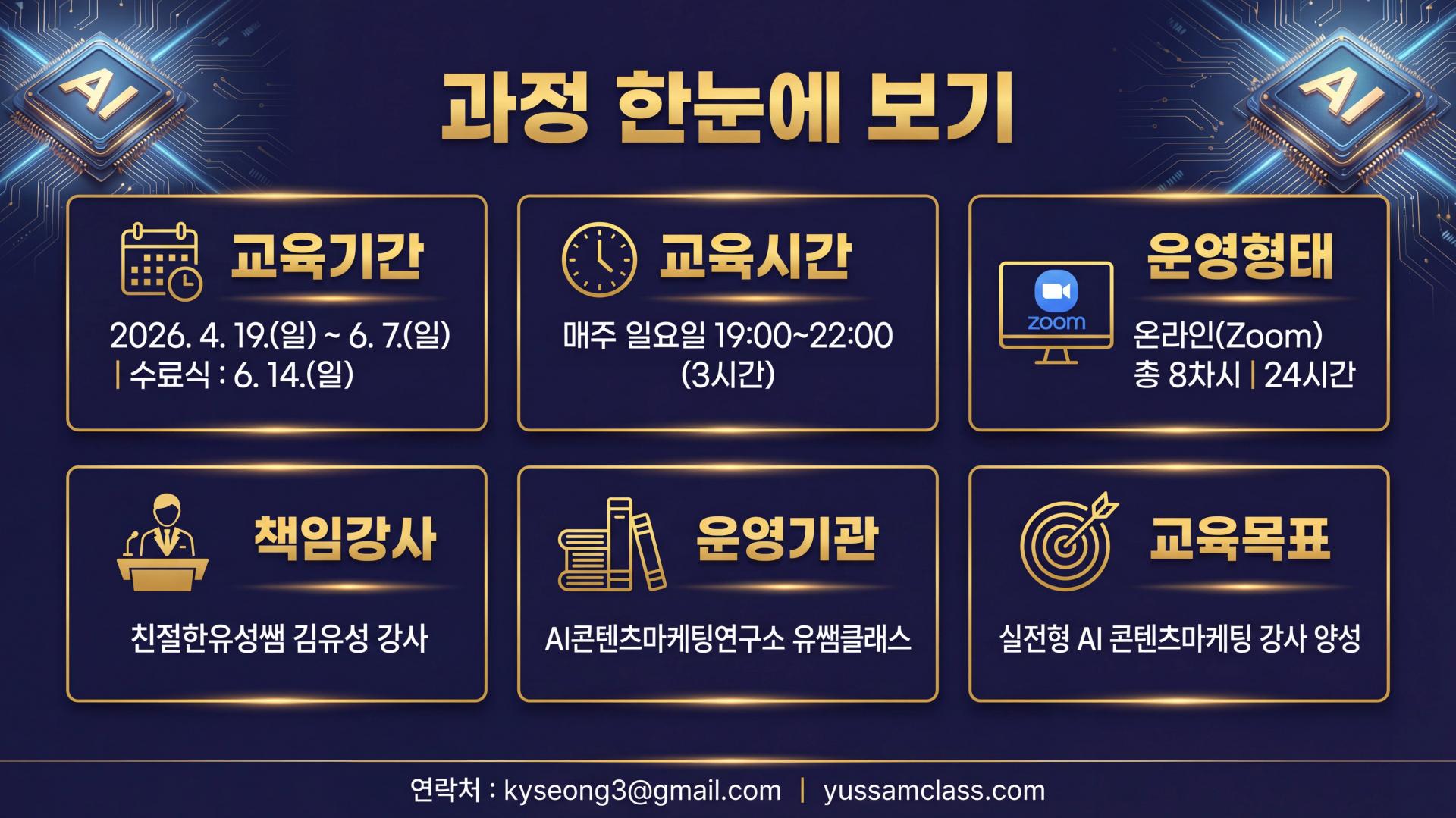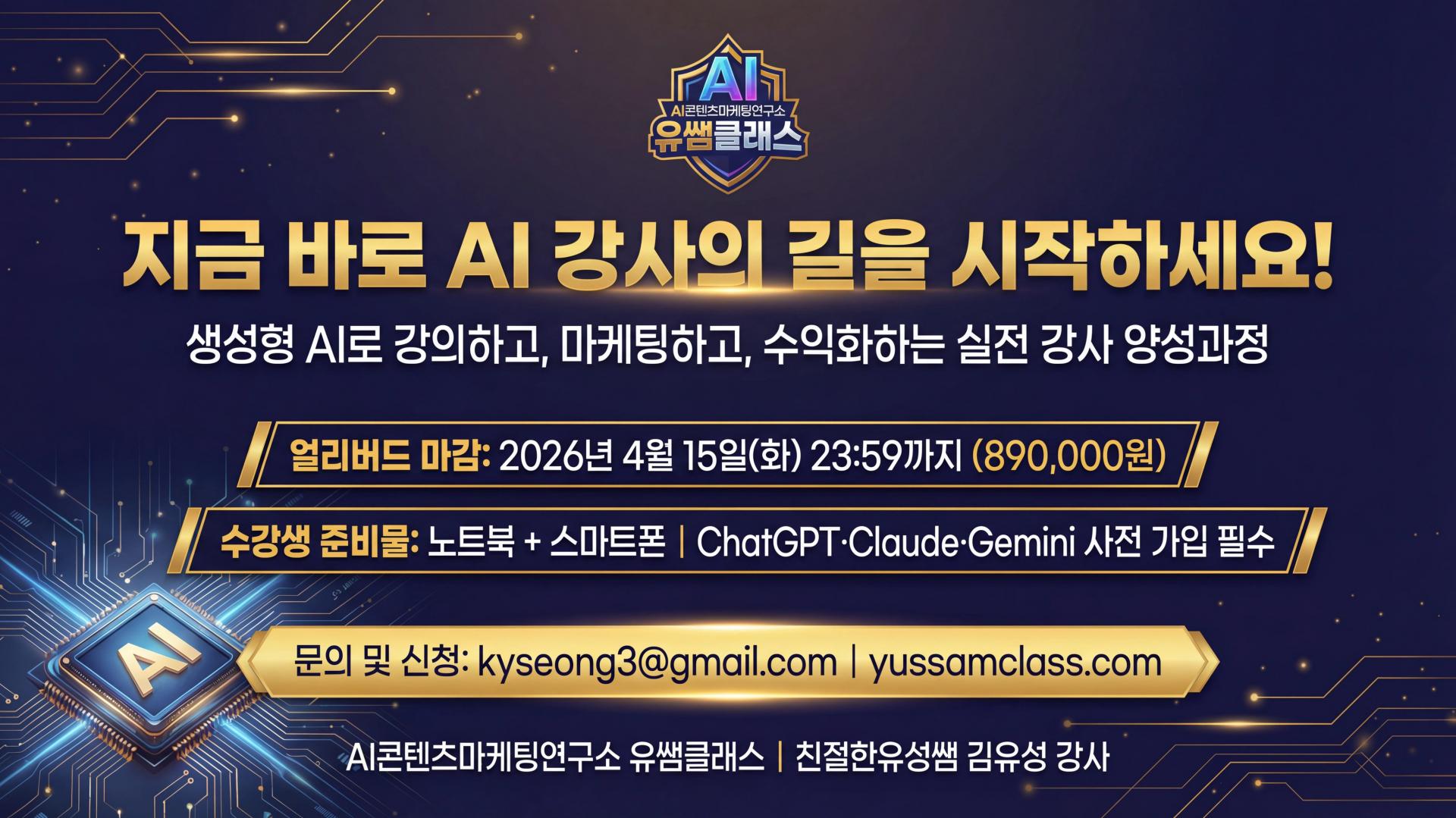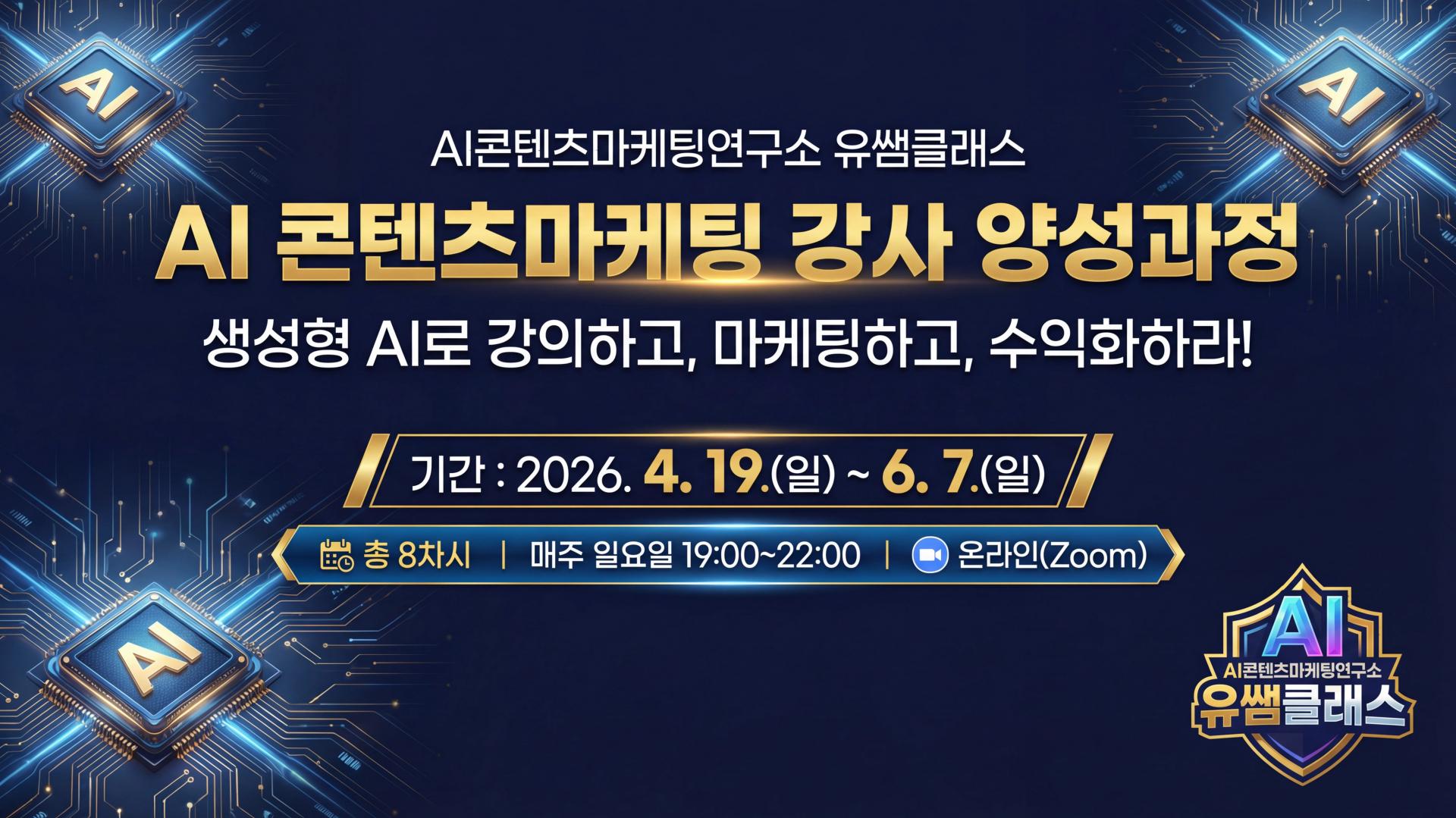 대한민국 AI 콘텐츠 마케팅의 기준, AI콘텐츠마케팅연구소와 유쌤클래스가 여러분의 커리어에 날개를 달아드립니다.