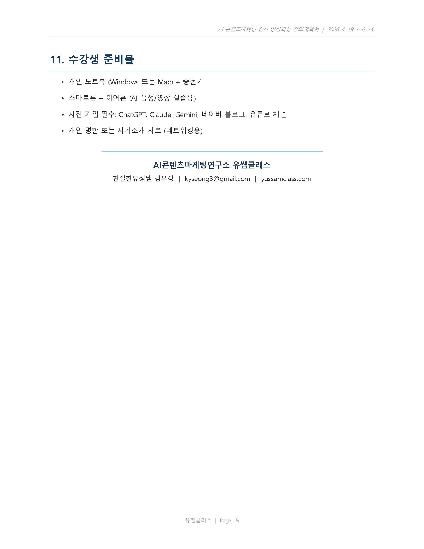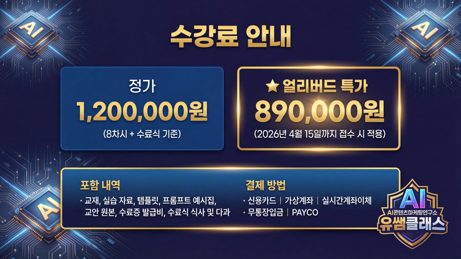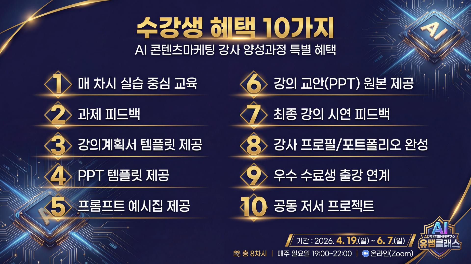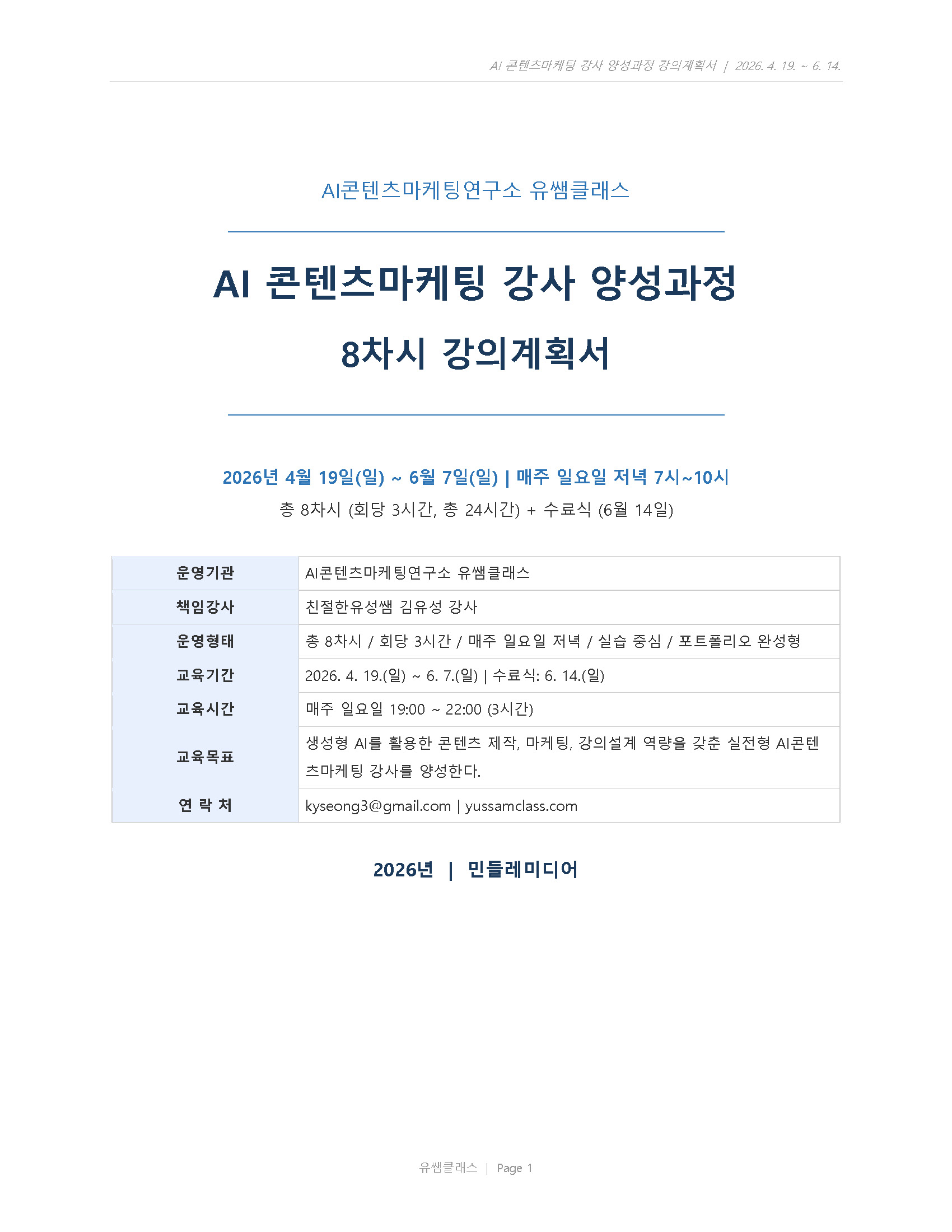 대한민국 AI 콘텐츠 마케팅의 기준, AI콘텐츠마케팅연구소와 유쌤클래스가 여러분의 커리어에 날개를 달아드립니다.